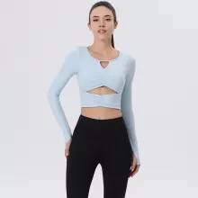 Use our battle tested marketing materials for Women's Long Sleeve Yoga Crop Top with Chest Pads
