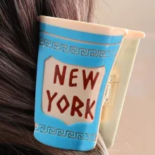 Use our battle tested marketing materials for Blue New York Letter Rectangle Hair Claw Clip – Stylish Coffee Cup Design