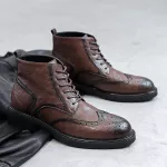 These boots are best worn during autumn and winter, when a combination of warmth and style is essential. Pair them with jeans, chinos, or even dress pants for a versatile look that transitions from day to night seamlessly. Their unique mix of military-inspired structure and vintage brogue elegance makes them stand out in any wardrobe, offering a bold statement without being overpowering.Step Into Confidence