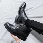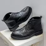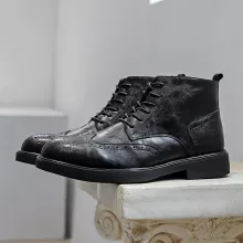 Step confidently into any occasion with these Vintage British Men’s Leather Ankle Boots. Crafted from premium genuine cow leather, these boots offer a timeless design that pairs effortlessly with both casual and formal outfits. The lace-up brogue detailing adds a touch of sophistication, while the pointed toe and low heel create a sleek, modern silhouette. Perfect for autumn and winter, these boots are designed to keep you stylish and comfortable as the seasons change.High-Quality Craftsmanship