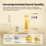 Stay fully immersed in your music with hybrid active noise cancellation up to -45dB. From the roar of airplanes to the hustle of busy streets, unwanted sounds fade away, letting you focus on what truly matters—your music. Switch on Transparency Mode whenever you need to stay aware of your surroundings without taking your headphones off.Next-Gen Wireless Connection