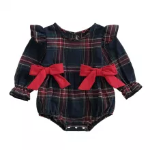 Dress your baby girl in charm and coziness with this plaid bowknot romper. Designed with a sweet round neck and long sleeves, this fall jumpsuit keeps your little one snug while making sure she looks picture-perfect. The classic plaid pattern paired with a delicate bowknot detail adds just the right touch of cuteness for everyday wear or special moments.Product Features