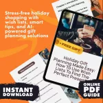 This guide is perfect for busy parents, thoughtful friends, or anyone who wants to streamline holiday shopping. Whether you’re shopping for kids, family, coworkers, or a large circle of friends, you’ll find smart strategies that make the process effortless. What makes this resource different from other digital downloads is its combination of practical wish list management and innovative AI tools for planning, giving you a modern edge in gift planning.Get Started Today