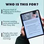 This digital checklist is for anyone who craves more calm, focus, and energy in their mornings. Whether you’re a busy professional, a student, or simply someone tired of doomscrolling at dawn, the No-Phone Morning Ritual for a Clear Mind will guide you toward healthier habits that last.Make Mornings Yours Again