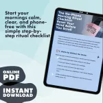 Don’t let your phone dictate your first thoughts of the day. Download the No-Phone Morning Ritual Checklist: Reset Your Mind Before You Scroll today and start creating mindful mornings that set you up for success. Your future self will thank you.Would you like me to also create a shorter, punchy version of this description optimized for platforms like Pinterest or Instagram?