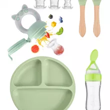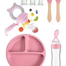 Use our battle tested marketing materials for 8PCS Silicone Baby Tableware Set with Suction Plate & Wooden Handle Utensils