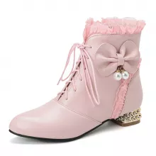 Use our battle tested marketing materials for Sweet Butterfly Knot Ankle Boots with Block Heels and Lace-Up Design