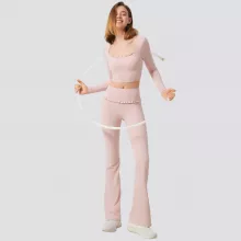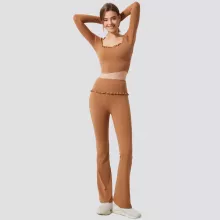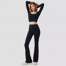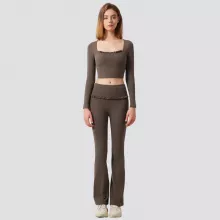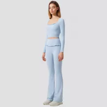 Crafted from a high-performance blend of 75% nylon and 25% spandex, this yoga set feels buttery-soft on your skin while offering excellent stretch and shape retention. The crop top features built-in padding for light support and a secure fit, while the high-rise leggings smooth and sculpt your waistline with a gentle compression effect. The flared leg design adds a stylish twist, elongating your silhouette and offering a chic balance between fitness wear and everyday fashion.