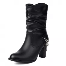 Use our battle tested marketing materials for Women’s Mid-Calf Boots with Round Toe, 8cm Block Heel & Metal Accent