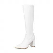 Use our battle tested marketing materials for Knee High Pointed Toe Boots with Block Heel 9cm Zipper Party Style