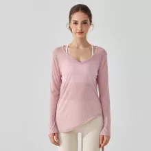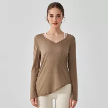 Women’s Long Sleeve V-Neck Yoga Top – Loose Fit Workout Shirt