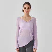 This long sleeve workout shirt is crafted from a breathable blend of polyester and rayon with a soft knitted texture. The fabric is anti-pilling, anti-shrink, anti-wrinkle, and built to last through countless wears and washes. A sexy yet subtle V-neckline gives it a feminine touch, while the loose fit ensures full freedom of movement. Available in classic solid colors—white, purple, pink, and brown—it’s a versatile piece that suits all seasons: spring, summer, autumn, and winter.