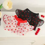Give your furry friend the perfect mix of comfort and fashion with this breathable black mesh pet vest. Designed for dogs and cats, this lightweight pullover shirt keeps pets cool during walks while adding a touch of charm with its heart-shaped design and playful fly sleeves. The soft polyester fabric is gentle on your pet’s skin, while the built-in leash buckle ensures safety and convenience when you’re out together.Product Features