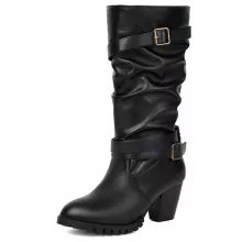Use our battle tested marketing materials for Women's Mid-Calf Pleated Western Boots - Buckle Detail, Low Heels, Plus Sizes