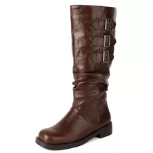 Use our battle tested marketing materials for Vintage Knee-High Western Boots for Women – Buckle Detail, Low Heel
