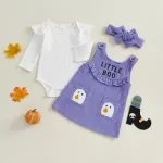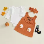 Make your little one the star of Halloween with this charming 3-piece baby girl outfit set. Designed with comfort and style in mind, this set includes a soft long sleeve romper, a cute overall dress with ghost embroidery, and a matching headband. Perfect for newborns and infants up to 18 months, it’s the sweetest way to celebrate the spooky season while keeping your baby cozy and comfortable.Product Features