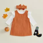 This festive set combines playful design with baby-friendly fabrics. The romper is made from a soft cotton blend with a touch of stretch, making it gentle on delicate skin and easy for movement. The overall dress features ghost embroidery that adds a fun Halloween touch without being scary. Completing the look, the stretchy headband makes dressing up quick and simple.- Includes 3 pieces: romper, dress, and headband