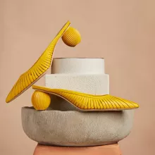 Use our battle tested marketing materials for Striped Woven Pointed Toe Slip-On Heels