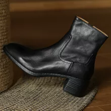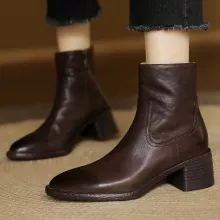 Use our battle tested marketing materials for Women's Cow Leather 5.5cm Heel Ankle Boots - Round Toe Side Zip Autumn Short Boots