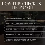 Download the How to Spot Quality in Luxury Wood Furniture checklist today and shop smart with insider knowledge. Perfect for first-time buyers or seasoned collectors looking for a reliable, expert-backed tool. Add to cart now and start spotting the real gems in luxury furniture!