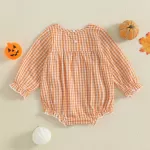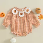 Unlike ordinary baby outfits, this romper is designed specifically for Halloween and fall celebrations. The plaid pattern adds a timeless, cozy look, while the pumpkin embroidery creates a festive touch that stands out in family photos, trick-or-treating adventures, or fall gatherings. It’s not just an outfit—it’s a keepsake piece that will make your baby’s first Halloween memories even more special.Benefits of Choosing This Romper