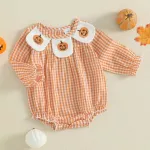 Dress your baby girl in the sweetest Halloween outfit with this plaid pumpkin-embroidered romper. Designed for newborns up to 18 months, this long-sleeve jumpsuit is made from a soft blend of 95% cotton and 5% elastane, keeping your little one cozy and comfortable while looking irresistibly cute. The playful plaid design paired with a charming pumpkin embroidery makes it perfect for celebrating spooky season in style.Features That Moms Love