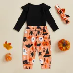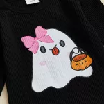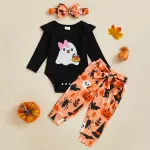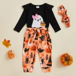 Make your baby girl the star of spooky season with this charming Halloween outfit set. Designed with a playful ghost print, this 3-piece ensemble includes a cozy long sleeve romper, matching pants with a fixed belt, and a sweet bow headband. Whether for a family photo, trick-or-treat night, or a festive fall party, this outfit is the perfect blend of comfort and cuteness.Product Features