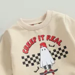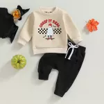 Get your little one ready for a spooky, fun-filled season with this Halloween Baby Boy Ghost Print Sweatshirt & Elastic Pants 2-Piece Fall Tracksuit. Perfect for the cooler months, this outfit is not only festive but also comfortable and practical for your growing toddler. Designed with a cute ghost print on the sweatshirt, it’s an ideal way to bring Halloween cheer to everyday wear. Whether you’re taking family photos or attending a holiday party, this tracksuit will make your baby boy the star of the show. This 2-piece set includes a long-sleeve sweatshirt and matching elastic pants that provide a snug, cozy fit. The soft fabric blend ensures your baby stays warm and comfy while looking adorable. Whether your little one is crawling, playing, or napping, this outfit guarantees comfort without compromising on style.Product Features: