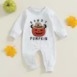 Get your baby boy ready for spooky season with this charming Halloween romper. Designed with soft fabric and delightful pumpkin and ghost embroidery, this long sleeve jumpsuit brings festive cheer while keeping your infant or toddler cozy. With its round neckline and crotch button closure, dressing your little one has never been easier. Perfect for fall celebrations, this romper combines comfort, cuteness, and seasonal style in one irresistible outfit.Key Features