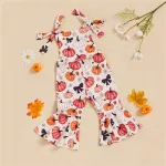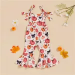 This adorable Fashion Toddler Baby Girls Halloween Pumpkin Print Sleeveless Jumpsuit is a must-have for your little one’s seasonal wardrobe! With a charming pumpkin and floral print, this cute and stylish jumpsuit brings the festive spirit to life. Whether you're preparing for Halloween, Thanksgiving, or just a cute fall day, this outfit is a perfect choice. Featuring a sleeveless design, tie straps, and bell-bottom pants, it provides both comfort and fun for your toddler. Let your little girl stand out in style and comfort this season!Key Features: