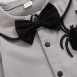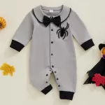 Make your baby boy the star of Halloween with this charming Halloween romper. Designed with a playful embroidered spider and a dapper bow tie, this romper blends festive fun with everyday comfort. The long sleeves and lapel neck create a polished look, while the button-up front makes dressing your little one quick and easy. Crafted from soft cotton with a hint of stretch, it ensures your baby stays cozy during chilly fall days.Features That Matter