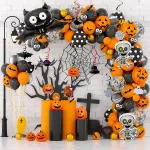 This versatile decoration kit is the ultimate accessory for your Halloween celebration. Whether you're hosting a kids' party, a haunted house, or a grown-up costume bash, this balloon garland arch is sure to impress. Hang it above doorways, across entryways, or use it as a backdrop for photo booths to create the perfect setting for your spooky festivities. Its combination of black, orange, and metallic elements enhances your space with dramatic flair and excitement. From haunted mansions to fun family get-togethers, this Halloween decoration kit works for all types of celebrations.Why Choose This Balloon Garland Arch Kit?