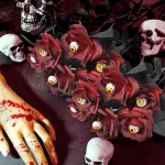 - Set of 1 or 5 artificial black roses with realistic eyeballs for added horror effect.