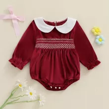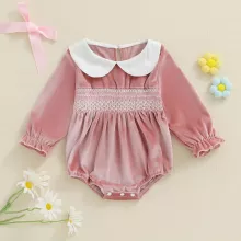 Use our battle tested marketing materials for Baby Girls Velvet Romper with Doll Collar & Embroidery