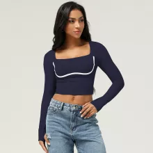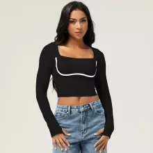 Stay confident and stylish in the Women's Long Sleeve Yoga Crop Top, designed to give you the perfect blend of fashion and function. With its sleek square neckline and flattering cropped fit, this top adds a modern twist to your workout wardrobe. The solid color design makes it versatile and easy to pair with leggings, shorts, or joggers, whether you’re at the gym, out for a run, or enjoying a casual day out.Breathable Comfort for Every Move