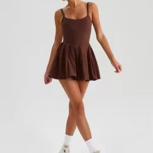 Step onto the court, the mat, or the track with style and comfort. This yoga dress sports skirt jumpsuit combines the sleek fit of activewear with the elegance of a tennis skirt. Designed as a clever false two-piece, it gives you full coverage and freedom of movement while looking effortlessly chic. Whether you're working up a sweat in the gym or enjoying a weekend run, this piece keeps you supported and stylish.