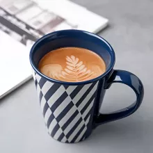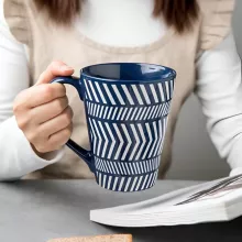 Use our battle tested marketing materials for Large Ceramic Coffee Mug with Blue Stripes – 15oz Eco-Friendly Cup