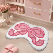 Use our battle tested marketing materials for Cute Pink Bow Pattern Irregular Shape Anti-Slip Bathroom & Kids Bedroom Rug
