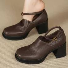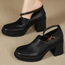 Use our battle tested marketing materials for Women's Sheepskin Square Toe Platform Pumps with Chunky Heel