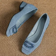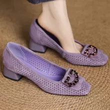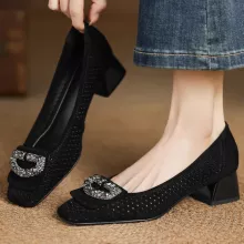 Use our battle tested marketing materials for Elegant Suede Leather Slip-On Pumps with Crystal Buckle