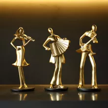 Use our battle tested marketing materials for Golden Resin Musician Figurine Sculpture – Violin & Accordion Home Decor