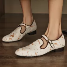 Use our battle tested marketing materials for Women's Leopard Horsehair Slip-On Loafers with Buckle