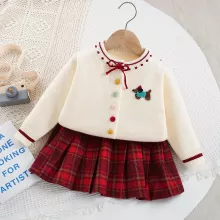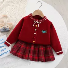 Use our battle tested marketing materials for Cute Colorful Kids Sweater Set with Plaid Skirt - Sizes 9M-5T