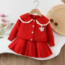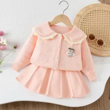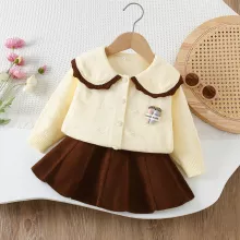Use our battle tested marketing materials for Vintage Doll Collar Knit Outfit for Kids - Cardigan & Skirt Set