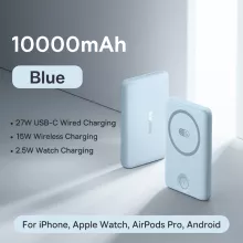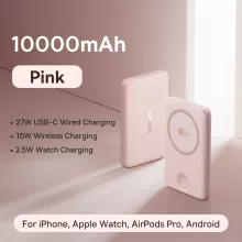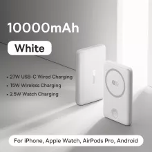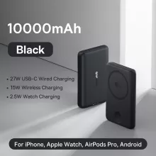 Keep your devices charged and ready for anything with this sleek and powerful 27W Magnetic Power Bank. Offering a seamless charging experience for both your iPhone and Apple Watch, this compact external battery combines cutting-edge technology with a practical design that fits your everyday needs. Featuring a built-in 10000mAh battery capacity, you can charge your devices on-the-go with ease. With 15W wireless charging for your iPhone, and a specially designed magnetic charging area for your Apple Watch, you can keep both devices juiced up simultaneously without the hassle of tangled cables. It’s the perfect companion for those who are always on the move.Product Features: