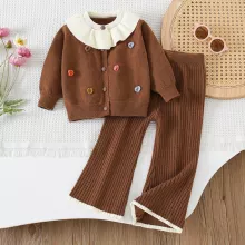Use our battle tested marketing materials for Girls' Knitted Cardigan Set with Ruffled Collar and Heart Patches