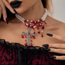 Use our battle tested marketing materials for Ingemark Goth Cross Pendant Choker Necklace with Red Crystal & Tassel
