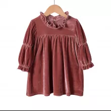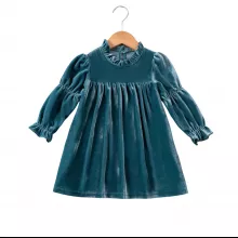 Dress your little one in charm and comfort with this adorable long sleeve velvet dress. Designed for girls ages 1-5 years, it blends playful elegance with everyday practicality. The ruffled round-neck and puff-sleeve design add a sweet and fashionable touch, while the gathered waistline creates a flattering silhouette that looks beautiful on every child.Soft, Cozy, and Perfect for the Season