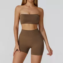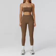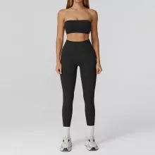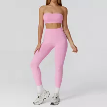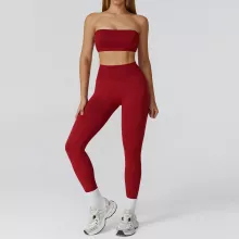Unlike ordinary gym wear, this set combines fashion-forward design with functionality. The strapless bra not only offers secure support but also highlights your neckline and shoulders beautifully, while the seamless leggings hug your body with sculpting comfort. The lightweight fabric is breathable, stretchy, and quick-drying, making it ideal for workouts and everyday athleisure wear. With no pockets and a sleek finish, the set is perfect for creating a clean, streamlined gym look.