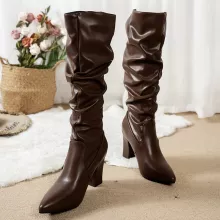 Use our battle tested marketing materials for Vintage Knee High Pleated Boots for Women with Thick Heel